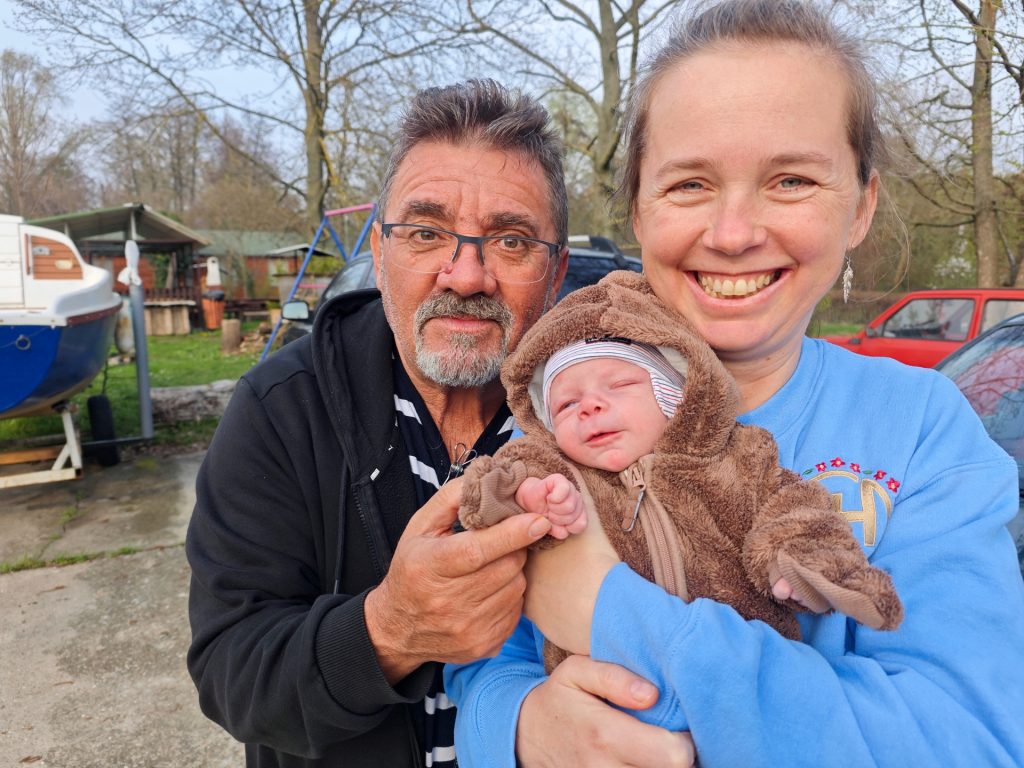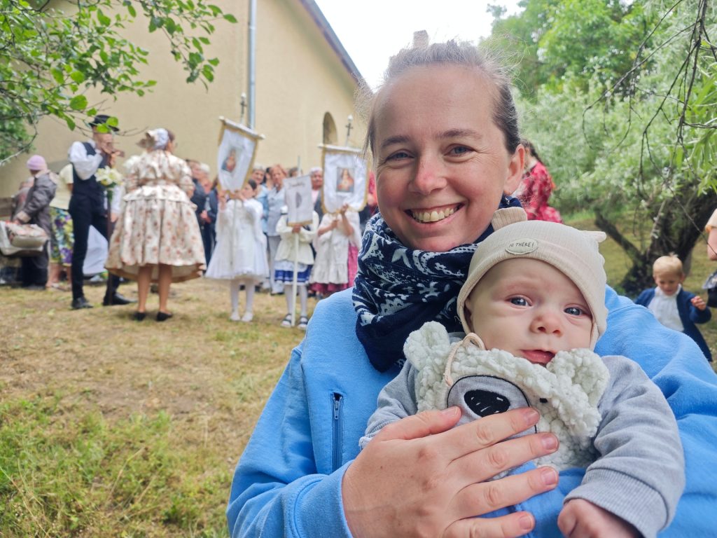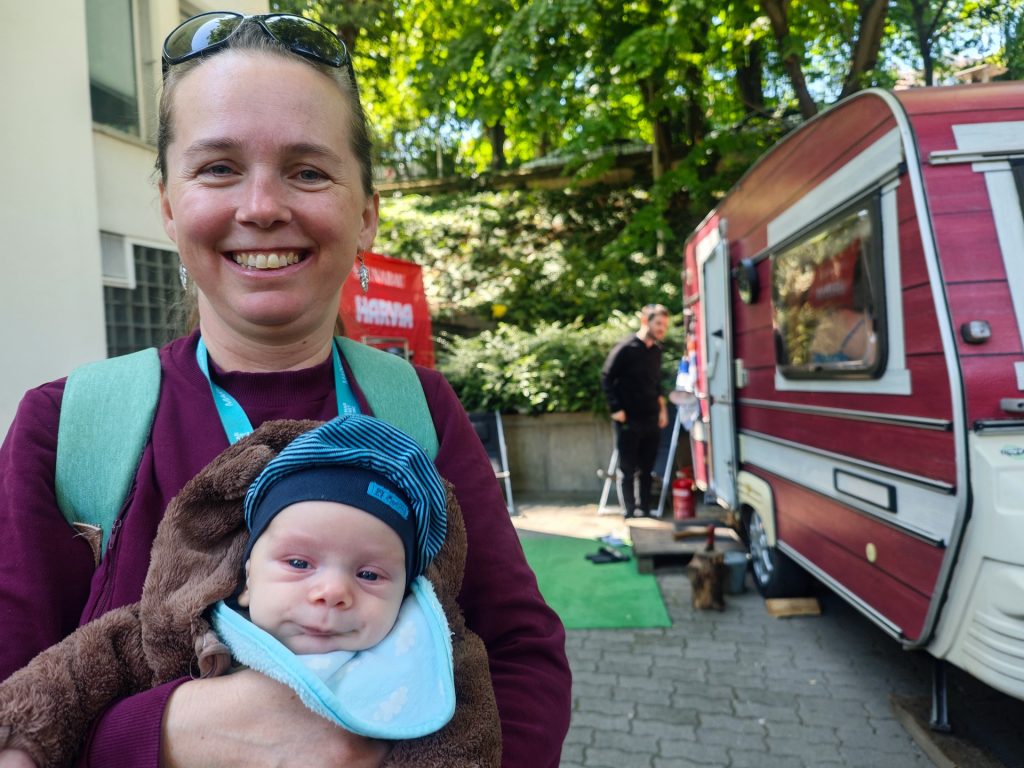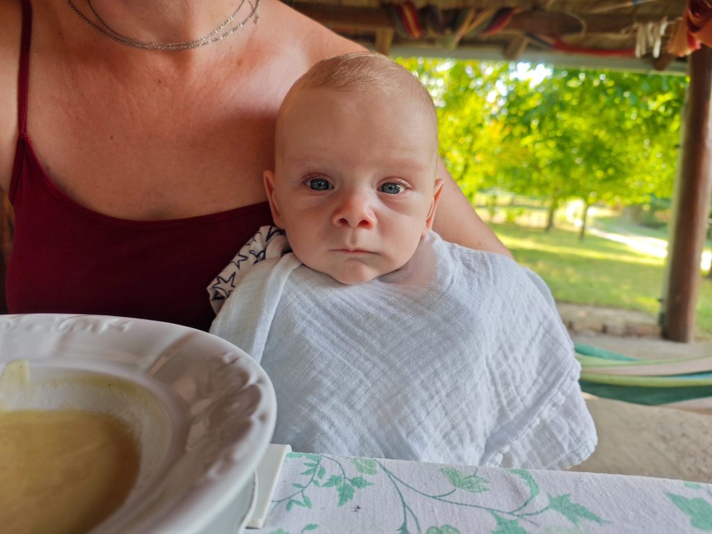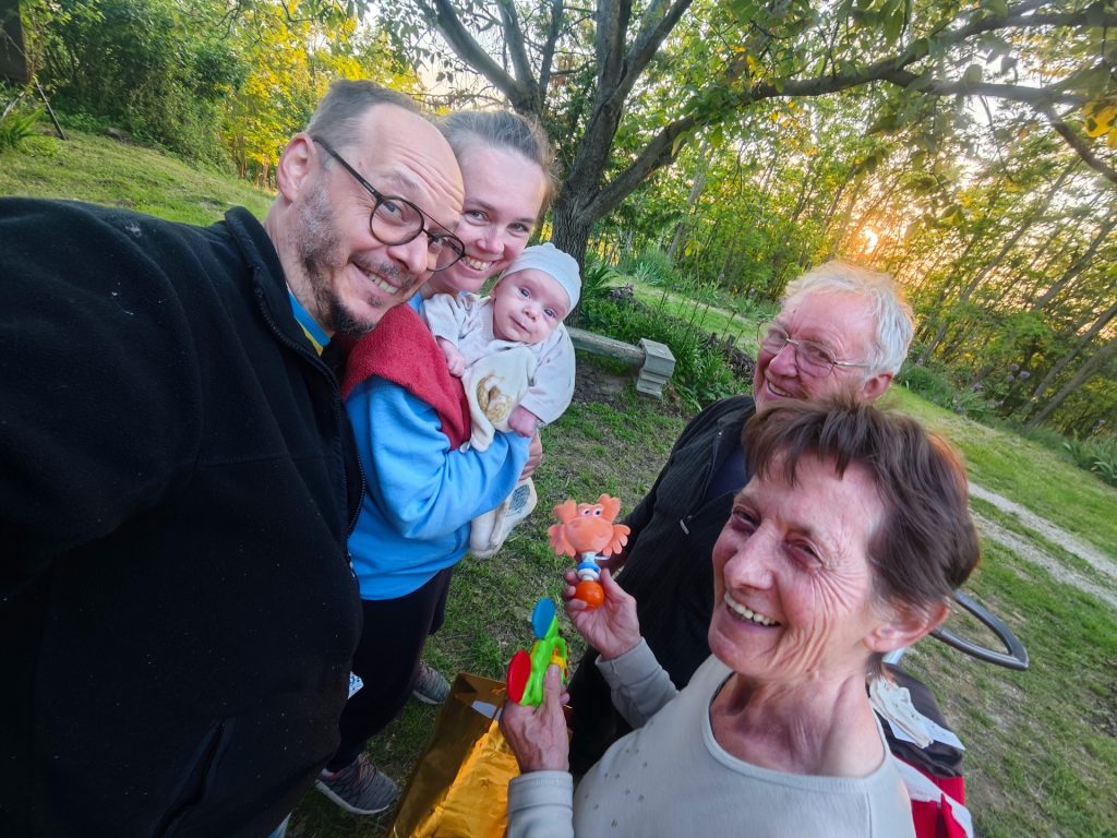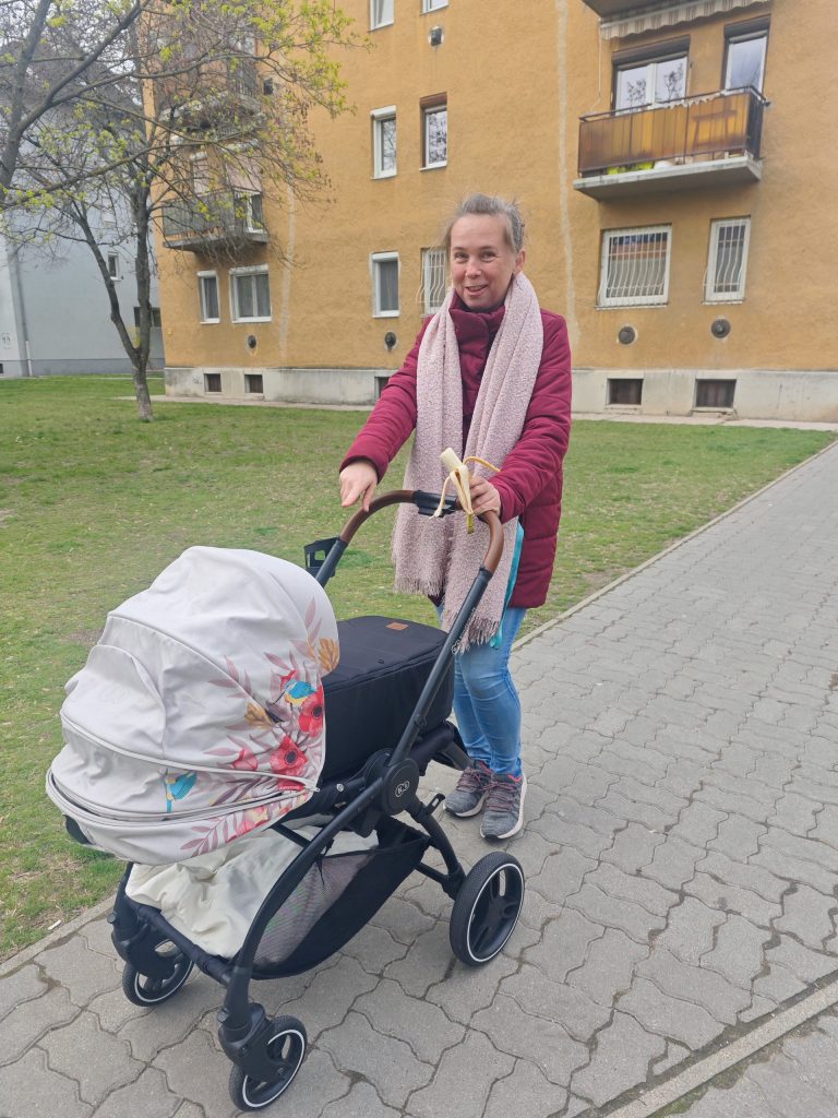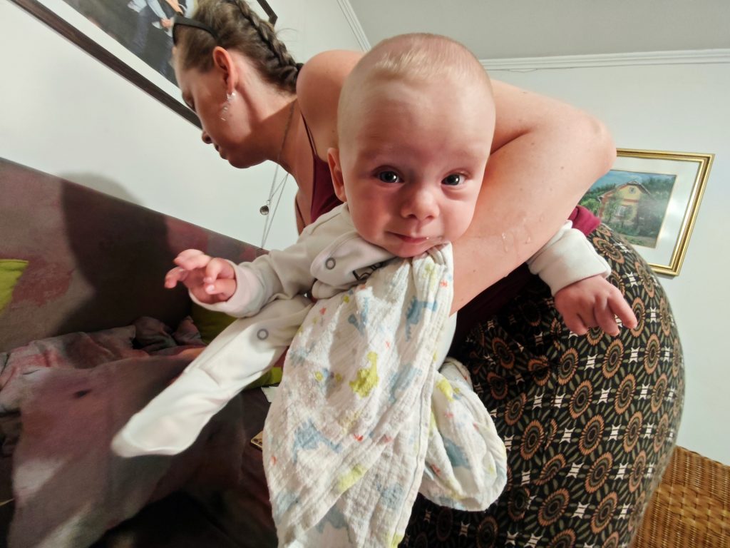 Már az esküvőn is jól volt és az utolsó pillanatig, mármint a szülés előtti utolsó pillanatig segített nekünk. Azóta mi segítünk neki. Néha már alszunk is.