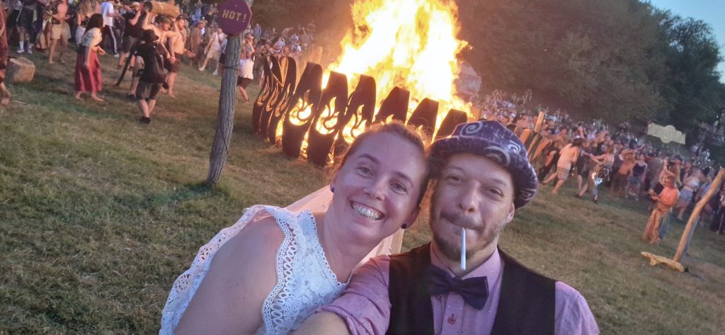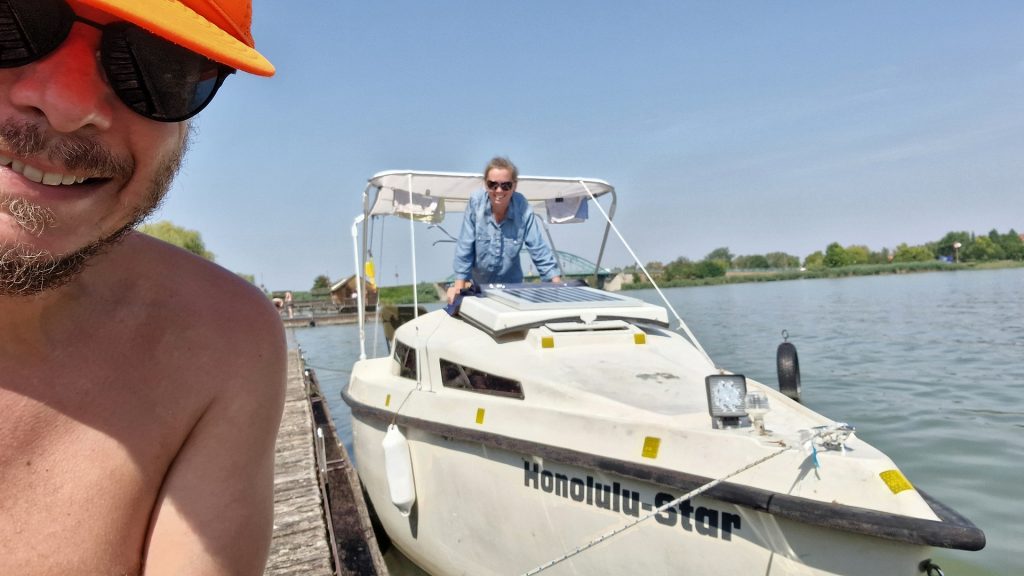 A nászutunkat Ozorán a fesztiválon és a Ráckevei Dunán a kis a Honolulu Staron töltöttük, kicsit elbújva a világ elől. Boldogan hippiztük át az esküvő utáni egy hónapot. Katalin aranyos volt és én is próbáltam rendesen viselkedni. Kati azt mondja sikerült.